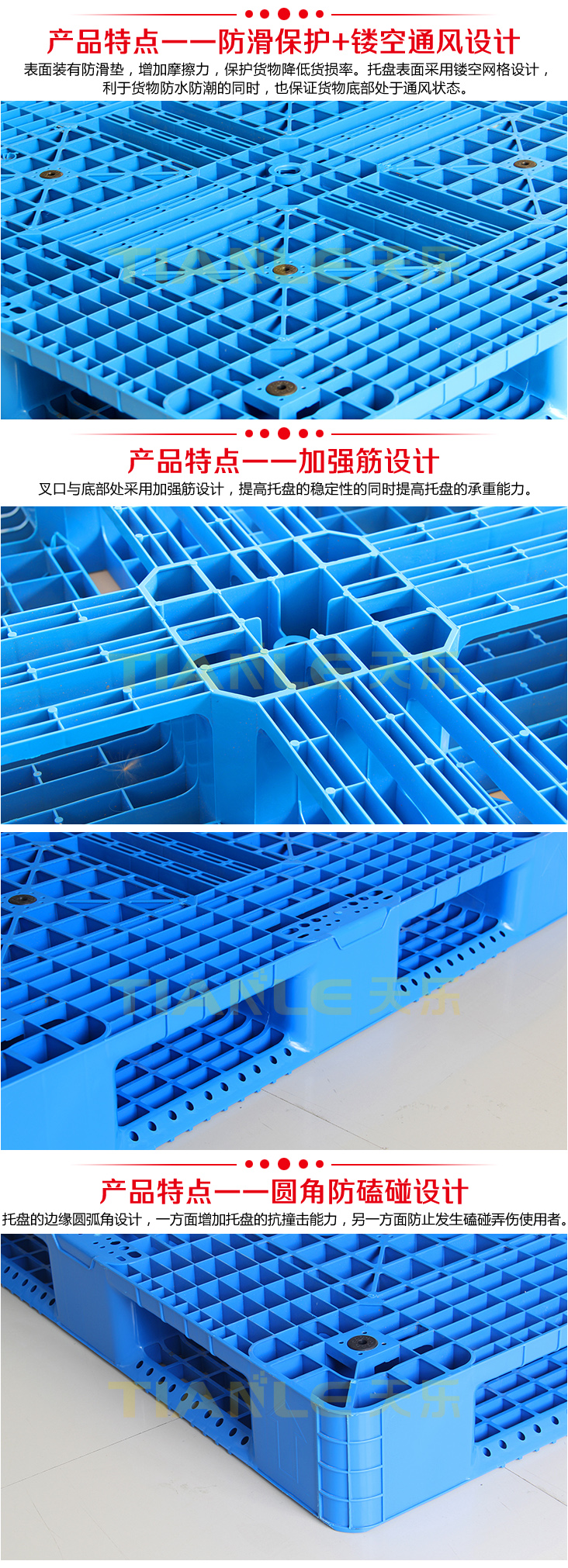 山東天樂塑料科技有限公司,主要生產塑料托盤,塑料周轉筐,塑料垃圾桶,銷售木包裝箱木托盤,膠合板托盤,產品使用于汽車、食品、醫藥、造紙、印刷、電子、電器、化工、紡織、服裝、倉儲物流、環衛等行業。產品多規格全價格實惠,大廠家售后保障體系完善。產品品種,以載重量分類,包括:一次 使用的特輕型、輕型、標準型、貨架加重型等適用范圍:食品醫藥化工紡織汽配廠等行業倉儲物流運輸用